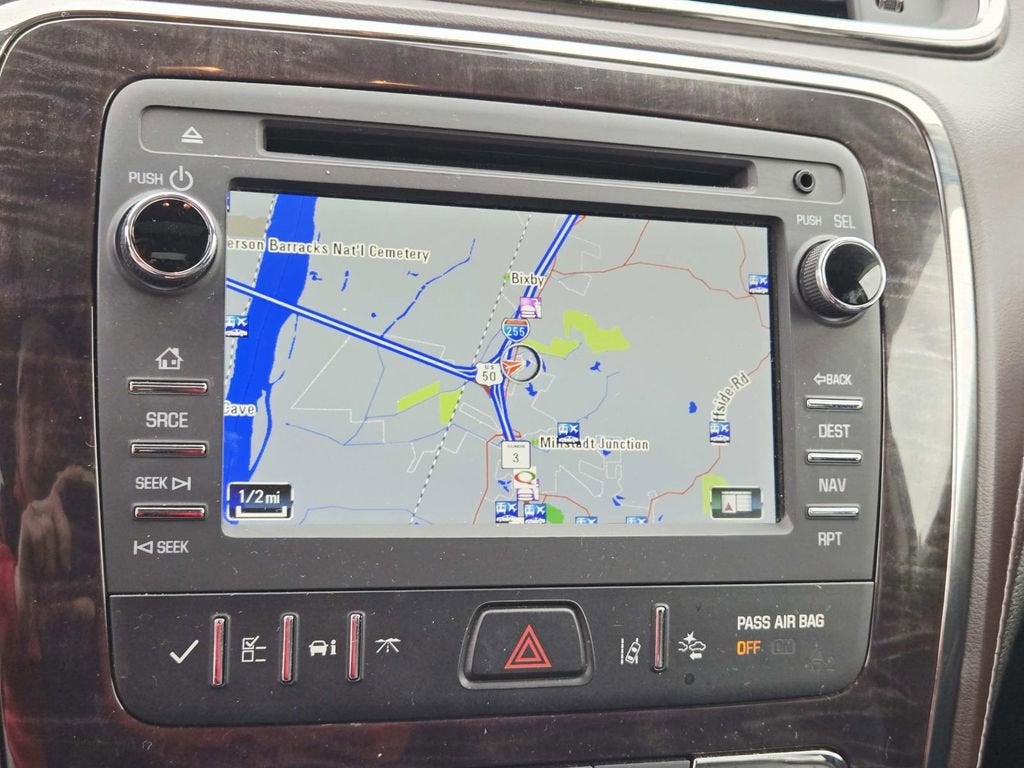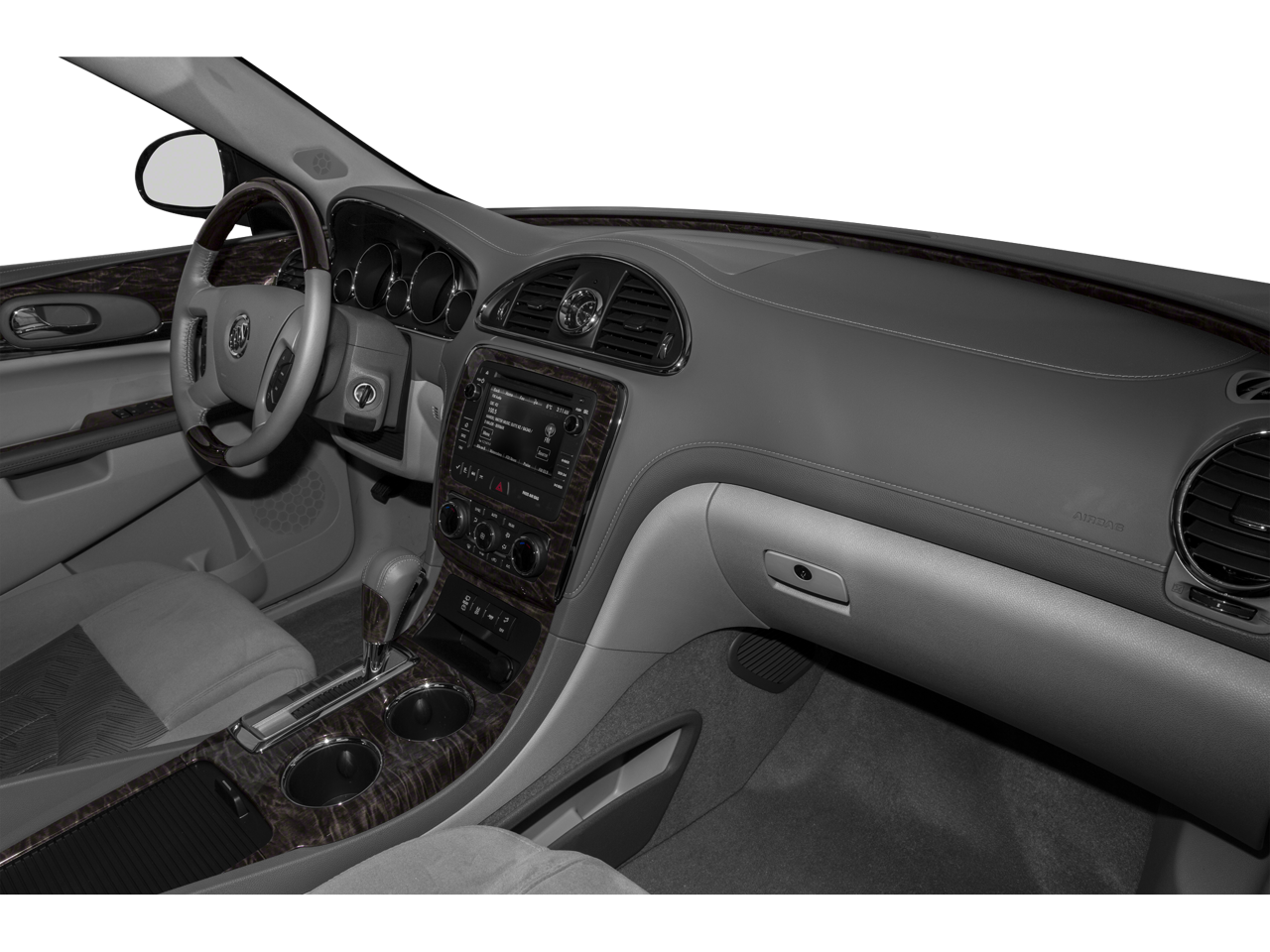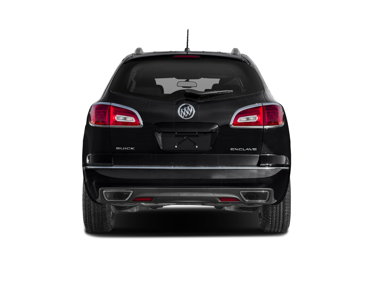 This Enclave is well equipped with 4500lbs Trailering Package (Heavy-Duty Cooling System and Trailer Hitch), Experience Buick Package (Power Tilt-Sliding Moonroof and Wheels: 20 Ultra Bright Blade Silver Aluminum), Preferred Equipment Group 1SN (Bose Sound System, Forward Collision Alert & Lane Departure Warning, and NavTraffic), Premium Package (Articulating Headlights, Heated & Cooled Driver & Front Passenger Seats, Power Tilt & Telescopic Steering Column, and Power-Folding Heated Body-Color Outside Mirrors), 4D Sport Utility, AWD, Ebony Leather, 10 Speakers, 19 9-Spoke Chrome-Clad Aluminum Wheels, 3.16 Axle Ratio, 3rd row seats: split-bench, 4-Wheel Disc Brakes, 7-Passenger Seating, ABS brakes, Air Conditioning, Alloy wheels, AM/FM radio: SiriusXM, Auto tilt-away steering wheel, Auto-dimming door mirrors, Auto-dimming Rear-View mirror, Automatic temperature control, Bose Performance-Enhanced 10-Speaker System, Brake assist, Bumpers: body-color, CD player, Compass, Delay-off headlights, Driver door bin, Driver vanity mirror, Dual front impact airbags, Dual front side impact airbags, Electronic Stability Control, Emergency communication system: OnStar Directions & Connections, Exterior Parking Camera Rear, Four wheel independent suspension, Front anti-roll bar, Front Bucket Seats, Front Center Armrest w/Storage, Front dual zone A/C, Front License Plate Mounting Bracket, Front reading lights, Fully automatic headlights, Garage door transmitter, Heated door mirrors, Heated front seats, Heated steering wheel, High intensity discharge headlights: Bi-Xenon, Illuminated entry, Leather steering wheel, Low tire pressure warning, Memory seat, Navigation System, Occupant sensing airbag, Outside temperature display, Overhead airbag, Panic alarm, Passenger door bin, Passenger vanity mirror, Perforated Leather-Appointed Seat Trim, Power door mirrors, Power driver seat, Power Liftgate, Power passenger seat, Power steering, Power windows, Radio data system, Radio: Color Touch AM/FM/CD/Nav w/IntelliLink, Rear air conditioning, Rear anti-roll bar, Rear audio controls, Rear Audio System Controls, Rear Parking Sensors, Rear reading lights, Rear window defroster, Rear window wiper, Remote keyless entry, Roof rack: rails only, Security system, SiriusXM Satellite Radio, Speed control, Speed-sensing steering, Spoiler, Steering wheel memory, Steering wheel mounted audio controls, Tachometer, Telescoping steering wheel, Tilt steering wheel, Traction control, Trip computer, Turn signal indicator mirrors, Variably intermittent wipers, Ventilated front seats, and Voltmeter.