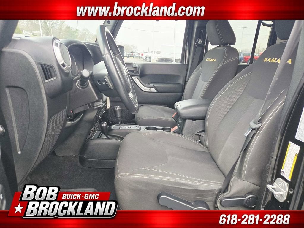 Odometer is 1222 miles below market average!Black Clearcoat 2015 Jeep Wrangler Unlimited Sahara w/ Hard Top 4WD 5-Speed Automatic 3.6L V6 24V VVTWrangler Unlimited Sahara w/ Hard Top, 3.6L V6 24V VVT, 5-Speed Automatic, 4WD, Black Clearcoat.Special financing available.This Wrangler is well equipped with Quick Order Package 24G, Wrangler Unlimited Sahara w/ Hard Top, 3.6L V6 24V VVT, 5-Speed Automatic, 4WD, Black Clearcoat, 18 x 7.5 7-Spoke Polished Aluminum Wheels, 18 x 7.5 Polished Satin Carbon Wheels, 3.21 Rear Axle Ratio, 4-Wheel Disc Brakes, 40GB Hard Drive w/28GB Available, 5-Year SIRIUSXM Travel Link Service, 6.5 Touch Screen Display, 8 Speakers, ABS brakes, Air Conditioning, Alloy wheels, Alpine 9-Speaker w/All Weather Subwoofer, AM/FM radio, Audio Jack Input for Mobile Devices, Auto-dimming Rear-View mirror, Brake assist, CD player, Cloth Bucket Seats, Compass, Driver door bin, Driver vanity mirror, Dual front impact airbags, Electronic Stability Control, Front anti-roll bar, Front Bucket Seats, Front Center Armrest w/Storage, Front fog lights, Front reading lights, Fully automatic headlights, GPS Navigation, Heated door mirrors, Heavy Duty Suspension w/Gas Shocks, Illuminated entry, Integrated roll-over protection, Leather steering wheel, Leather Wrapped Steering Wheel, Low tire pressure warning, Occupant sensing airbag, Outside temperature display, Panic alarm, Passenger door bin, Passenger vanity mirror, Power door mirrors, Power steering, Power windows, Radio data system, Radio: Uconnect 130 AM/FM/CD/MP3, Radio: Uconnect 430N CD/DVD/MP3/HDD/NAV, Rear anti-roll bar, Remote keyless entry, Remote Start System, Remote USB Port, Security system, SIRIUSXM Travel Link, Speed control, Split folding rear seat, Steering wheel mounted audio controls, Tachometer, Tilt steering wheel, Traction control, Trip computer, and Variably intermittent wipers.