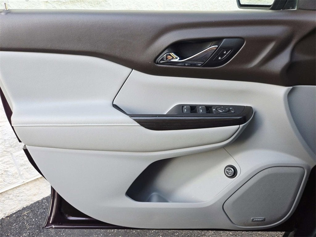 This Acadia is well equipped with Preferred Equipment Group 4SA, Acadia SLT-1 Preferred, 4D Sport Utility, 3.6L V6 SIDI DOHC VVT, FWD, 155 Amp Alternator, 18 x 7.5 Aluminum (4) Wheels, 3rd row seats: split-bench, 4-Wheel Disc Brakes, 6-Passenger (2-2-2 Seating Configuration), 8 Speakers, ABS brakes, Air Conditioning, Alloy wheels, AM/FM radio: SiriusXM, Apple CarPlay/Android Auto, Auto-dimming door mirrors, Auto-dimming Rear-View mirror, Automatic temperature control, Brake assist, Bumpers: body-color, Compass, Delay-off headlights, Driver door bin, Driver vanity mirror, Dual front impact airbags, Dual front side impact airbags, Dual SkyScape 2-Panel Power Sunroof, Electronic Stability Control, Emergency communication system: OnStar and GMC connected services capable, Exterior Parking Camera Rear, Four wheel independent suspension, Front anti-roll bar, Front Bucket Seats, Front Center Armrest, Front dual zone A/C, Front fog lights, Front License Plate Bracket, Front reading lights, Fully automatic headlights, Garage door transmitter: HomeLink, Heated door mirrors, Heated front seats, Illuminated entry, Knee airbag, Low tire pressure warning, Occupant sensing airbag, Outside temperature display, Overhead airbag, Overhead console, Panic alarm, Passenger door bin, Passenger vanity mirror, Perforated Leather-Appointed Seat Trim, Power door mirrors, Power driver seat, Power Liftgate, Power passenger seat, Power steering, Power windows, Premium audio system: GMC Infotainment System, Radio data system, Radio: AM/FM 8 Diagonal Color Touch Navigation, Radio: AM/FM 8 Diagonal Color Touch Screen, Rear air conditioning, Rear anti-roll bar, Rear reading lights, Rear window defroster, Rear window wiper, Remote keyless entry, Roof rack: rails only, Security system, SiriusXM Satellite Radio, Speed control, Speed-sensing steering, Spoiler, Steering wheel mounted audio controls, Tachometer, Telescoping steering wheel, Tilt steering wheel, Traction control, Trip computer, Variably intermittent wipers, and Voltmeter.