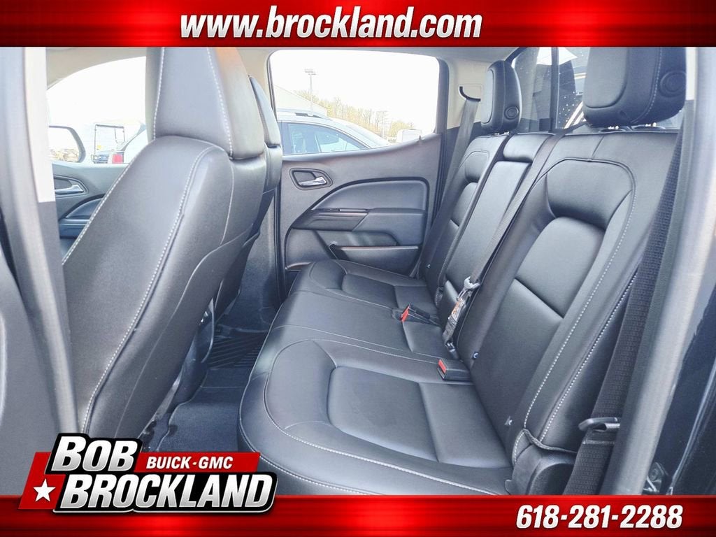 This Colorado is well equipped with Heavy-Duty Trailering Package, Performance Skid Plate Package (LPO), Preferred Equipment Group 4Z7 (UltraSonic Rear Park Assist), Z71 Midnight Edition (All-Weather Floor Liner (LPO), Black Bowtie, Black Spray-On Bedliner w/Chevrolet Logo, Body-Color Grille, and Wheels: 17 x 8 Gloss Black Aluminum), Colorado Z71 Midnight Edition, 4D Crew Cab, V6, 4WD, Jet Black Artificial Leather, 2 USB Data Ports w/SD Card Reader, 3.42 Rear Axle Ratio, 4-Way Power Front Passenger Seat Adjuster, 4-Wheel Disc Brakes, 6 Speakers, 6-Speaker Audio System Feature, ABS brakes, Air Conditioning, Alloy wheels, AM/FM radio: SiriusXM, Apple CarPlay, Auto-dimming Rear-View mirror, Automatic temperature control, Bose Premium 7-Speaker Audio System Feature, Bumpers: body-color, Cloth/Leatherette Seat Trim, Compass, Delay-off headlights, Driver 6-Way Power Seat Adjuster, Driver door bin, Driver vanity mirror, Dual front impact airbags, Dual front side impact airbags, Electronic Stability Control, Exterior Parking Camera Rear, Front anti-roll bar, Front Bucket Seats, Front Center Armrest, Front fog lights, Front reading lights, Front wheel independent suspension, Fully automatic headlights, HD Radio, Heated door mirrors, Heated Driver & Front Passenger Seats, Heated front seats, Heated steering wheel, Illuminated entry, Low tire pressure warning, Occupant sensing airbag, Off-Road Sport Bar (LPO), Outside temperature display, Overhead airbag, Overhead console, Panic alarm, Passenger door bin, Passenger vanity mirror, Power door mirrors, Power Driver Lumbar Control Seat Adjuster, Power driver seat, Power Passenger Lumbar Control Seat Adjuster, Power passenger seat, Power steering, Power windows, Premium audio system: Chevrolet Infotainment System, Radio data system, Radio: Chevrolet Infotainment 3 Plus System, Radio: Chevrolet Infotainment 3 Premium System, Rear reading lights, Rear seat center armrest, Rear step bumper, Rear window defroster, Remote keyless entry, Security system, SiriusXM Radio, Speed control, Speed-sensing steering, Steering wheel mounted audio controls, Tachometer, Telescoping steering wheel, Tilt steering wheel, Tow/Haul Mode, Traction control, Trip computer, Variably intermittent wipers, and Wheels: 17 x 8 Dark Argent Metallic Cast Alloy.