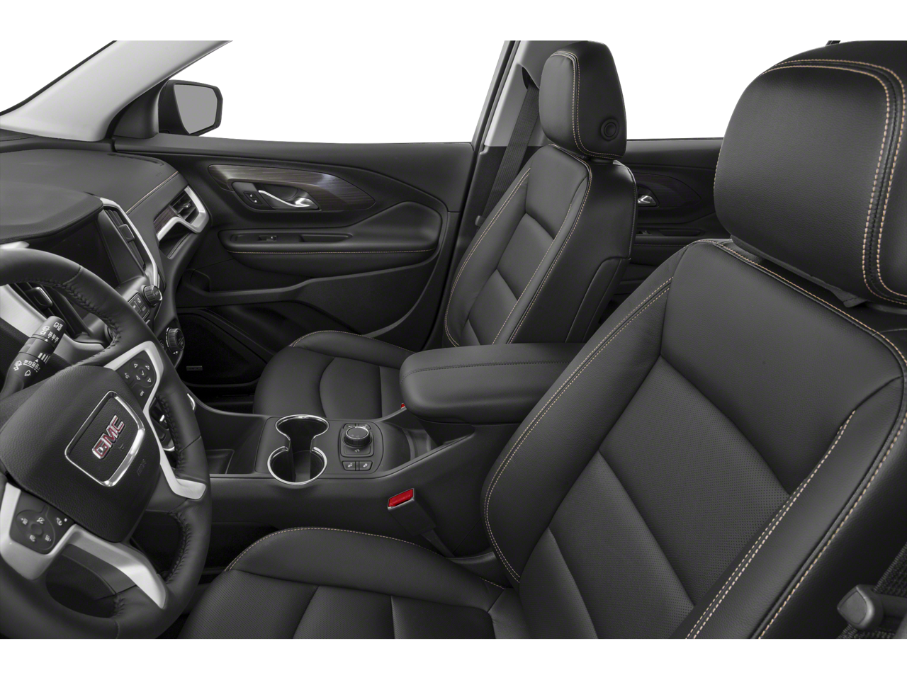 This Terrain is well equipped with Preferred Equipment Group 4SA, 2 USB Data Ports, 2 USB Data Ports w/SD Card Reader, 3.47 Axle Ratio, 4-Wheel Disc Brakes, 6 Speakers, 6-Speaker Audio System Feature, 8-Way Power Driver Seat Adjuster, ABS brakes, Air Conditioning, Alloy wheels, AM/FM radio: SiriusXM, Apple CarPlay/Android Auto, Auto High-beam Headlights, Auto-dimming door mirrors, Auto-dimming Rear-View mirror, Automatic temperature control, Bluetooth® For Phone, Brake assist, Bumpers: body-color, Compass, Delay-off headlights, Driver & Front Passenger Heated Seats, Driver door bin, Driver vanity mirror, Dual front impact airbags, Dual front side impact airbags, Electronic Stability Control, Emergency communication system: OnStar and GMC connected services capable, Exterior Parking Camera Rear, Four wheel independent suspension, Front anti-roll bar, Front Bucket Seats, Front Center Armrest, Front dual zone A/C, Front fog lights, Front reading lights, Fully automatic headlights, Garage door transmitter, Heated door mirrors, Heated front seats, Heated steering wheel, High-Intensity Discharge Headlights, Illuminated entry, Low tire pressure warning, Memory seat, Occupant sensing airbag, Outside temperature display, Overhead airbag, Overhead console, Panic alarm, Passenger door bin, Passenger vanity mirror, Perforated Leather-Appointed Seat Trim, Power door mirrors, Power Driver Lumbar Control, Power driver seat, Power Liftgate, Power passenger seat, Power steering, Power windows, Radio data system, Radio: GMC Infotainment Audio System w/8 Display, Rear anti-roll bar, Rear seat center armrest, Rear window defroster, Rear window wiper, Remote keyless entry, Roof rack: rails only, Security system, SiriusXM Radio, Speed control, Speed-sensing steering, Split folding rear seat, Spoiler, Steering wheel mounted audio controls, Tachometer, Telescoping steering wheel, Tilt steering wheel, Traction control, Trip computer, Turn signal indicator mirrors, Variably intermittent wipers, and Wheels: 18 x 7 Machined Aluminum w/Gray Accents.