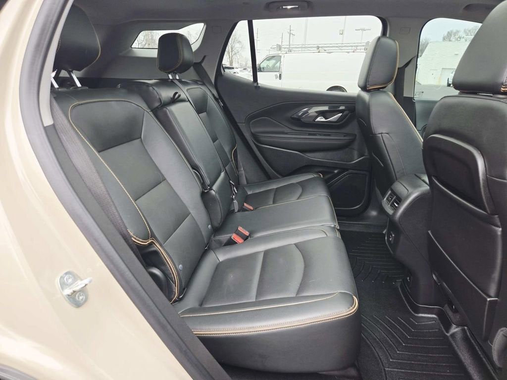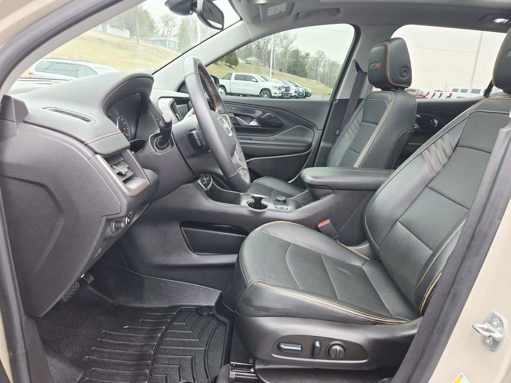 This Terrain is well equipped with Infotainment Package II (Premium 7-Speaker Bose Sound System w/Amplifier, Radio: GMC Infotainment Audio System w/Navigation, and SiriusXM Radio), License Plate Front Mounting Package, Preferred Equipment Group 4SC, 4D Sport Utility, AWD, Jet Black Leather, 2 USB Data Ports, 2 USB Data Ports w/SD Card Reader, 3.47 Axle Ratio, 4-Wheel Disc Brakes, 6 Speakers, 6-Speaker Audio System Feature, 6-Way Power Front Passenger Seat, 8-Way Power Driver Seat Adjuster, ABS brakes, Air Conditioning, Alloy wheels, AM/FM radio: SiriusXM, Auto High-beam Headlights, Auto-dimming Rear-View mirror, Automatic temperature control, Bluetooth® For Phone, Brake assist, Bumpers: body-color, Cold Air Grille Shutter, Compass, Delay-off headlights, Driver & Front Passenger Heated Seats, Driver door bin, Driver vanity mirror, Dual front impact airbags, Dual front side impact airbags, Electronic Stability Control, Emergency communication system: OnStar and GMC connected services capable, Four wheel independent suspension, Front anti-roll bar, Front Bucket Seats, Front Center Armrest, Front dual zone A/C, Front fog lights, Front Passenger 2-Way Power Lumbar, Front reading lights, Fully automatic headlights, Garage door transmitter, Heated door mirrors, Heated front seats, Heated steering wheel, Illuminated entry, Lane Departure Warning System, Low tire pressure warning, Memory seat, Occupant sensing airbag, Outside temperature display, Overhead airbag, Overhead console, Panic alarm, Passenger door bin, Passenger vanity mirror, Perforated Leather-Appointed Seat Trim w/AT4 Logo, Power door mirrors, Power Driver Lumbar Control, Power driver seat, Power Liftgate, Power passenger seat, Power steering, Power windows, Radio data system, Radio: GMC Infotainment Audio System w/8 Display, Rear anti-roll bar, Rear seat center armrest, Rear window defroster, Rear window wiper, Remote keyless entry, Roof rack: rails only, Security system, Skyscape Power Sunroof w/Power Sunscreen, Speed control, Speed-sensing steering, Split folding rear seat, Spoiler, Steering wheel mounted audio controls, Tachometer, Telescoping steering wheel, Tilt steering wheel, Traction control, Trip computer, Turn signal indicator mirrors, Variably intermittent wipers, Wheels: 17 x 7 Gloss Black Aluminum, and Wireless Apple CarPlay/Wireless Android Auto.