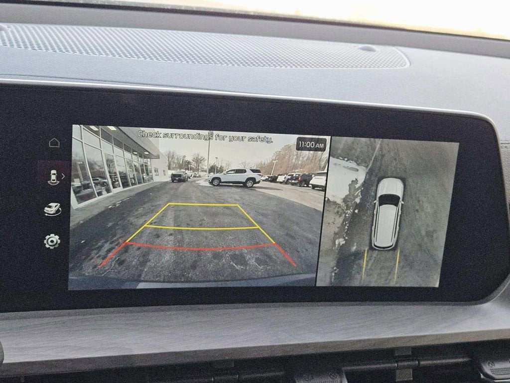 This Telluride is well equipped with 4D Sport Utility, Black Leather, 10 Speakers, 3.648 Axle Ratio, 3rd row seats: split-bench, 4-Wheel Disc Brakes, ABS brakes, Air Conditioning, Alloy wheels, AM/FM radio: SiriusXM, Apple CarPlay & Android Auto, Auto High-beam Headlights, Auto-dimming Rear-View mirror, Automatic temperature control, Brake assist, Bumpers: body-color, Cargo Cover, Cargo Tray Seat Back, Carpet Floor Mats, Compass, Delay-off headlights, Driver door bin, Driver vanity mirror, Dual front impact airbags, Dual front side impact airbags, Electronic Stability Control, Emergency communication system: 911 Connect, Exterior Parking Camera Rear, Four wheel independent suspension, Front anti-roll bar, Front Bucket Seats, Front Center Armrest, Front dual zone A/C, Front fog lights, Front reading lights, Fully automatic headlights, Garage door transmitter: HomeLink, harman/kardon® Speakers, Heated & Ventilated Front Bucket Seats, Heated door mirrors, Heated front seats, Heated steering wheel, Hybrid Cargo Net, Illuminated entry, Knee airbag, Leather Shift Knob, Leather steering wheel, Low tire pressure warning, Memory seat, Navigation System, Occupant sensing airbag, Outside temperature display, Overhead airbag, Overhead console, Panic alarm, Passenger door bin, Passenger vanity mirror, Power door mirrors, Power driver seat, Power Liftgate, Power moonroof, Power passenger seat, Power steering, Power windows, Radio data system, Radio: AM/FM Harman Kardon Audio System, Rear air conditioning, Rear anti-roll bar, Rear audio controls, Rear reading lights, Rear side impact airbag, Rear window defroster, Rear window wiper, Reclining 3rd row seat, Remote keyless entry, Roof rack: rails only, Security system, Smart Key w/ Push Button and Remote Start, Speed control, Speed-sensing steering, Split folding rear seat, Spoiler, Steering wheel mounted audio controls, Tachometer, Telescoping steering wheel, Tilt steering wheel, Traction control, Trip computer, Turn signal indicator mirrors, Variably intermittent wipers, and Ventilated front seats.